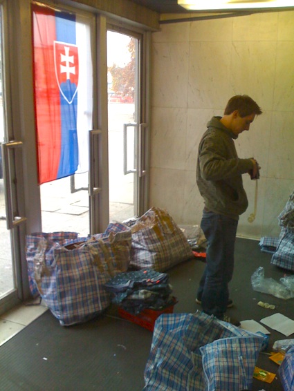 Lepší obraz o stave džamahírie, ktorej hlavným mestom Bratislava je, by nedali ani dve sociologické štúdie. Pre mňa osobne je však najsymptomatickejší posledný obrázok – pohľad na budovu deja, ktorá akoby z oka vypadla budove Domu odborov v Spišskej Novej Vsi (a určite aj Snine, Michalovciach, Medzilaborciach…), ktorý rovnako slúži na príležitostný predaj colných zabavení či dražobných prebytkov… Väzíme zarytí v socialistickej minulosti viac, než si dokážeme priznať :-(