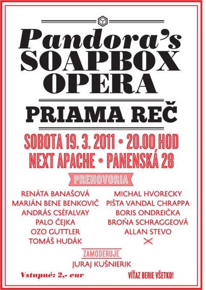 Peter Hajdin zverejnil na svojom Flickri pekné fotky z čítačky Pandora’s Soapbox Opera. Akcia sa konala v sobotu 19. marca večer v mojej obľúbenej kaviarni Next Apache na Panenskej ulici v Bratislave.