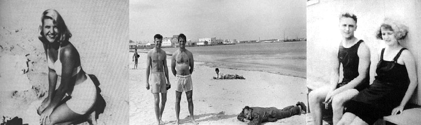 Pri pohľade na teplomer mi napadá: myslíte, že by sa Joseph Roth urazil, keby som z jeho kníh dnes o piatej U červeného raka čítal v plavkách?:) Pripomeňme si zopár literárnych velikánov na plážach. Zľava Sylvia Plath, Peter Orlovsky a Jack Kerouac (Burroughs v obleku sa hanbil ako ja:) a Francis & Zelda Fitzgeraldovci. Literary Greats In Their Swimsuits!