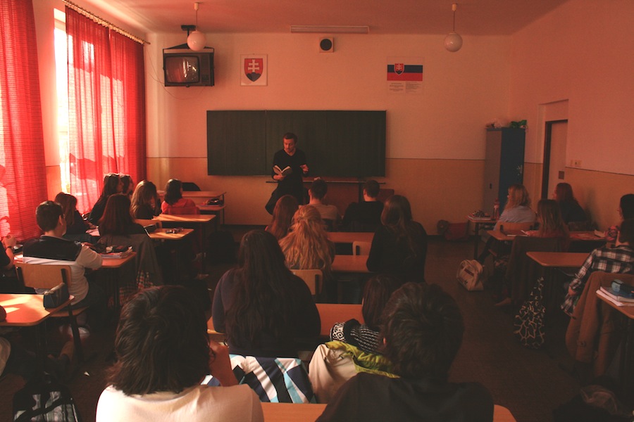 Hlásim sa vám prvý raz zo svojej literárnej cesty. V Liptovskom Hrádku som čítal na gymnáziu. Bol to silný zážitok. Po tých rokoch už dokážem rýchlo odhadnúť, kde majú dobrú učiteľku alebo učiteľa slovenského jazyka a literatúry. V triede pani Tatjany Mravcovej dve tretiny študentov pravidelne čítajú a asi desať z nich skúša aj literárne tvoriť. Takže som bol vlastne medzi kolegyňami a kolegami.
